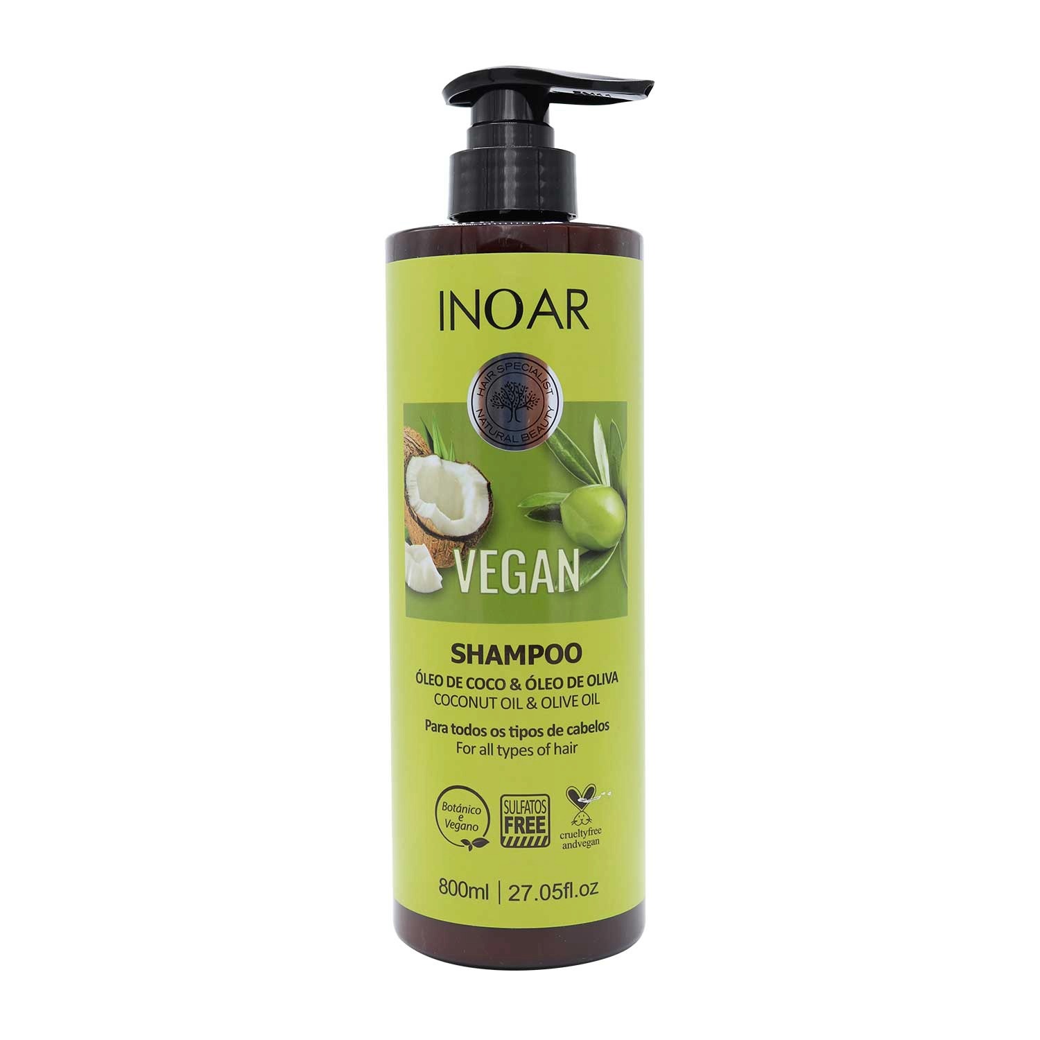 شامپو بدون سولفات زيتون و نارگيل وگان اينوآر - 800ميل - Inoar