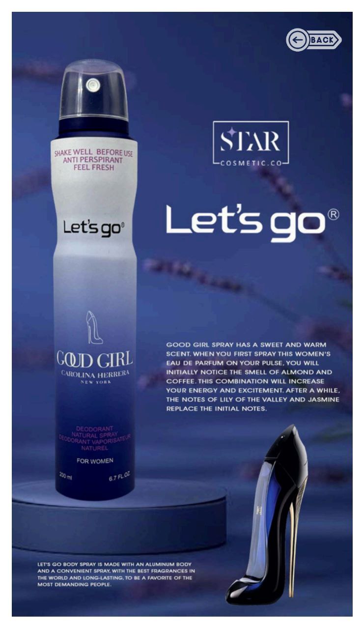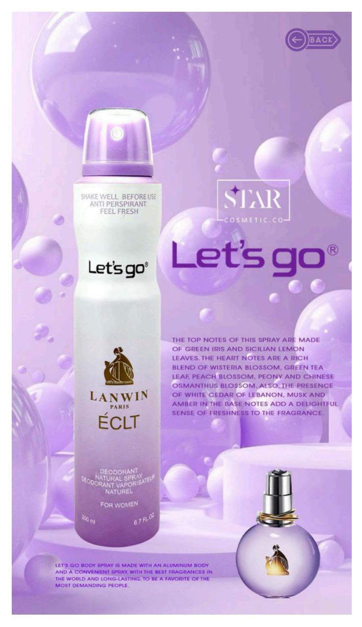 اسپری دئودورانت عطری لتز گو - رایحه های مختلف - 200 میل - Lets Go
