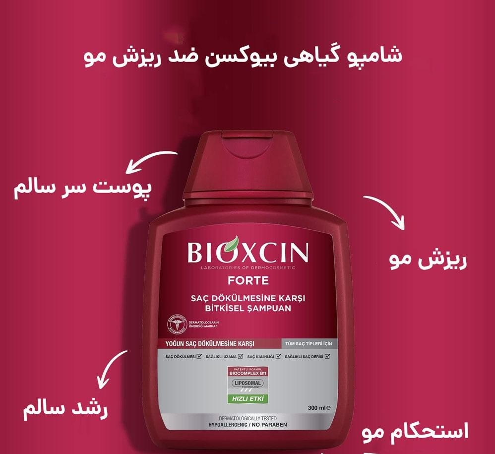 شامپو ضد ريزش مو بيوکسين فورته قرمز مناسب انواع مو - 300 میل - Bioxcin